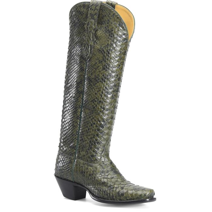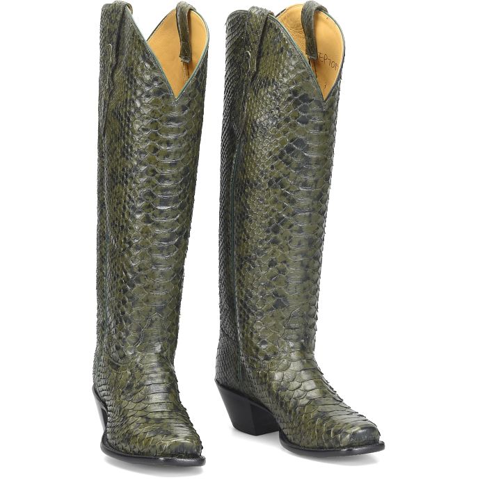 This striking 17" ladies' boot is crafted entirely from premium python, offering a bold and exotic look from top to bottom. Featuring a sleek design, a medium square toe, and intricate scales that catch the eye, this boot embodies both elegance and edge. Perfect for making a statement, it delivers a high-fashion Western vibe with superior craftsmanship, ensuring you stand out with confidence and style in any setting.