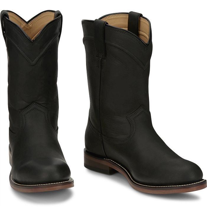 This 10" tall men's roper boot is a refined classic. It's durable full grain leather and classic roper toe and leather outsole set this boot apart. The round toe and unit block heel provide a relaxed fit in and out of the stirrup and the cushioned insole supports the foot for lasting comfort.