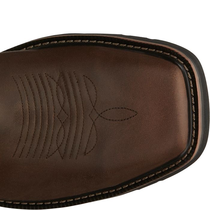 Its clean leather upper is embellished by a retro-themed stitch pattern with a rich brown square toe vamp. The square steel toe provides protection and impact-absorption so you can feel confident stepping on to any job. This boot also features the J-Flex Flexible Comfort System® insole that adds cushion and support and the Stampede™ dual density rubber outsole with resistance to abrasion, chips, slipping, and marking which allows you to comfortably work on any surface and meets ASTM F2413 safety footwear standards.