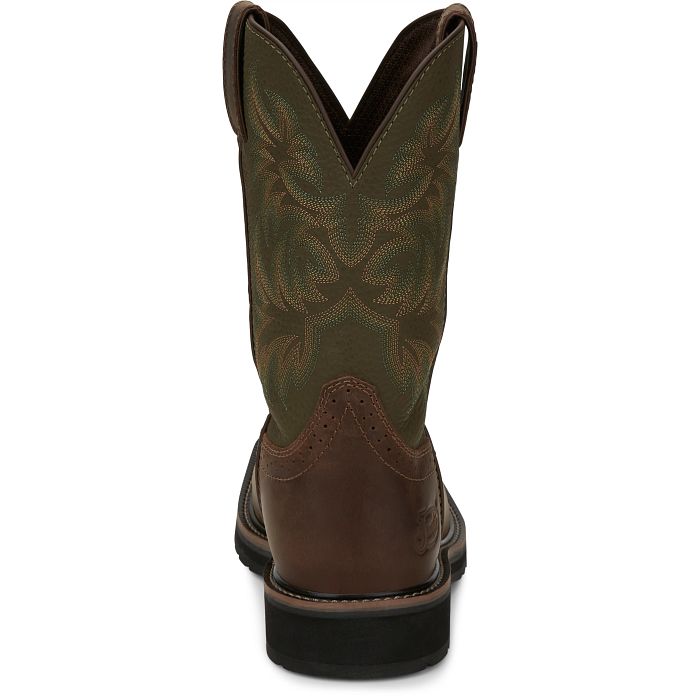 Its leather upper is embellished by a vibrant stitch pattern and is paired with a polished square toe foot. This boot has a rubber and EVA combination outsole with resistance to abrasion, chips, slipping, and marking which allows you to comfortably work on any surface.