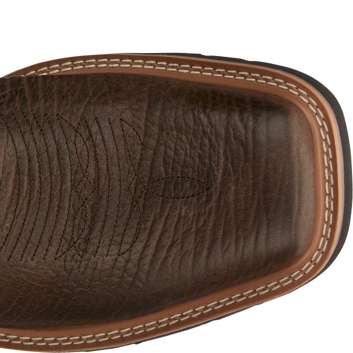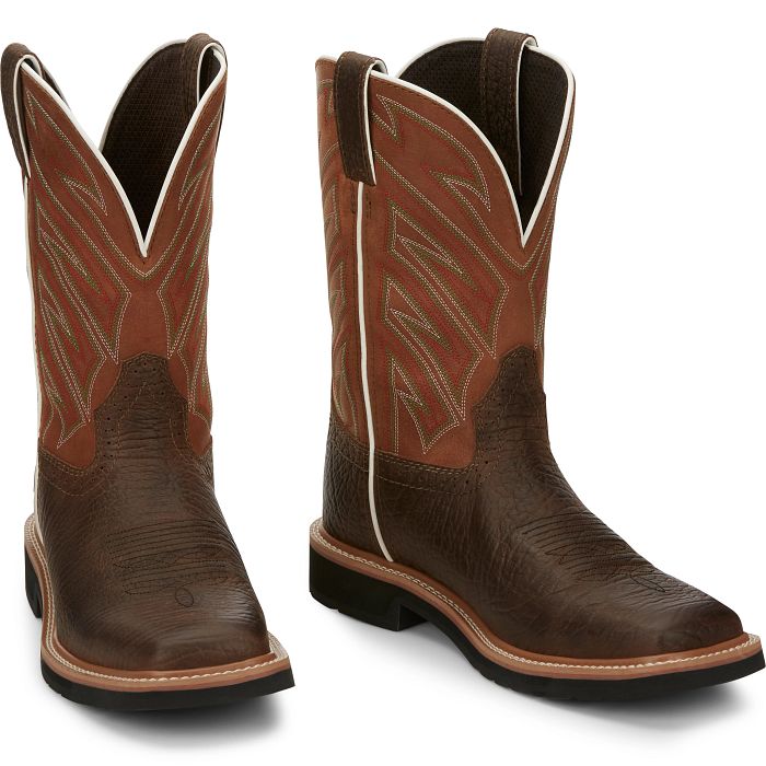 The parched orange upper and dark brown lower gives this pull-on boot subtle style. It's constructed for convenience and durability with an orthotic insole and standard Stampede™ Rubber outsole is resistant to abrasion, chips, slipping, and marking so it's ready to take on the toughest terrain.