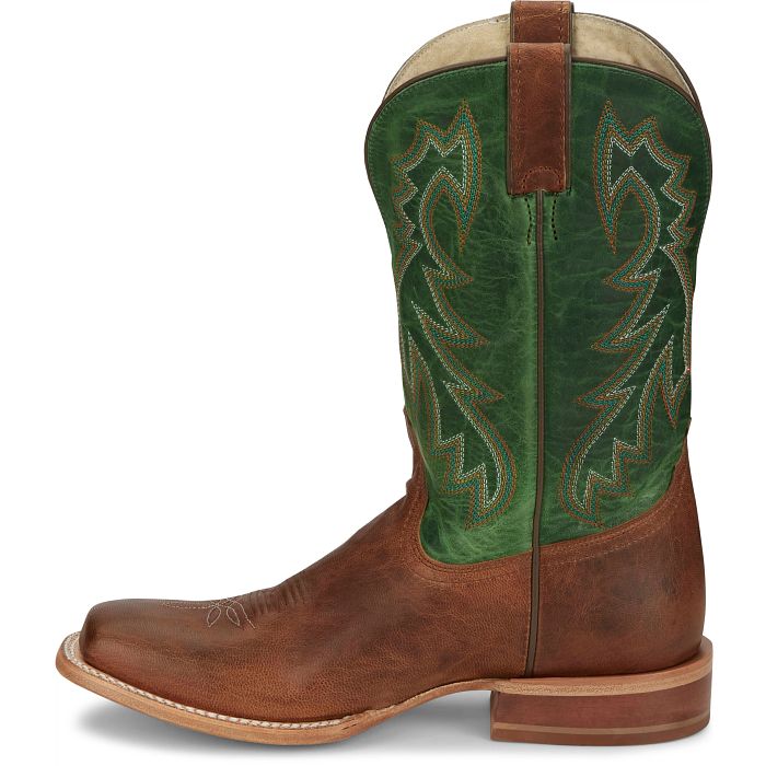 Step into Western tradition with this 11" cowboy boot. Featuring a durable goat leather vamp and a full grain cowhide upper, this boot offers both rugged durability and classic style. The rich, detailed stitching on the shaft adds a touch of elegance, while the strong construction ensures these boots are built to last. Perfect for everyday wear or special occasions, these boots provide a comfortable fit and timeless Western appeal. Whether you're working on the ranch or heading out for a night on the town, these boots are a perfect choice for any cowboy.