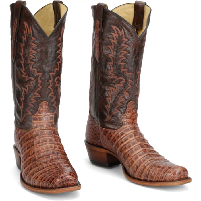 Exude sophistication with this handcrafted Caiman boot, featuring a bold, textured vamp and intricate Western stitching on the shaft. Designed with a square toe and a durable leather sole, this boot combines luxury and functionality. Perfect for making a statement while offering long-lasting comfort and style.