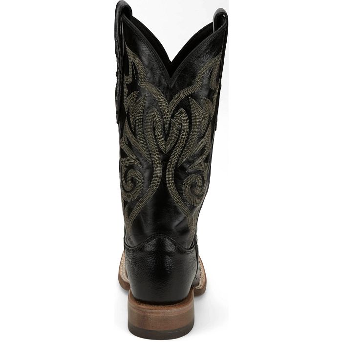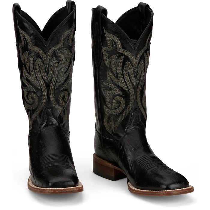 This boot has a classy touch, featuring a rich leather upper with a golden tan stitch pattern and a smooth quill ostrich foot. It's designed for comfort, sporting a broad square toe and J-Flex Flexible Comfort System® insoles for added support.
