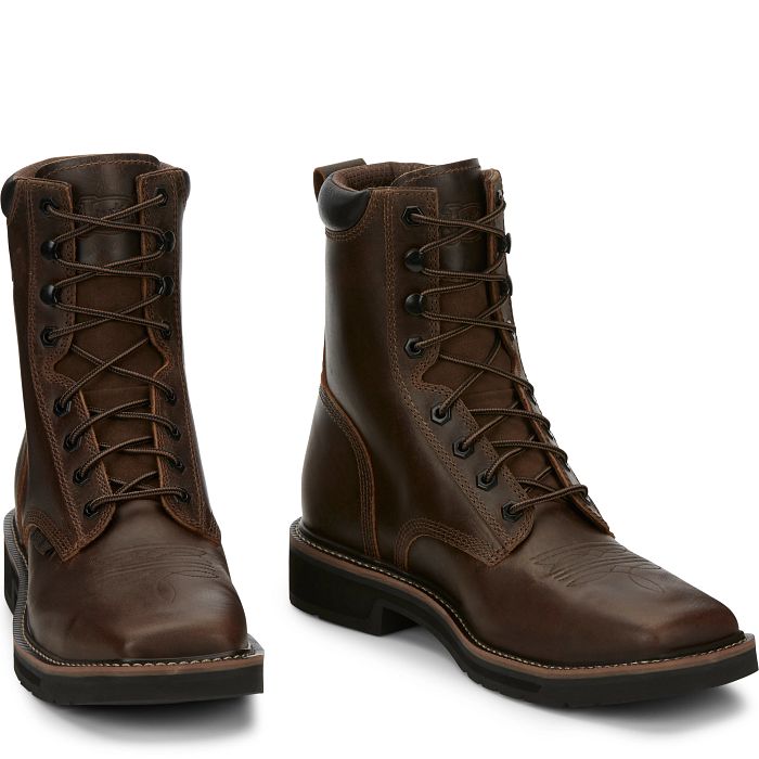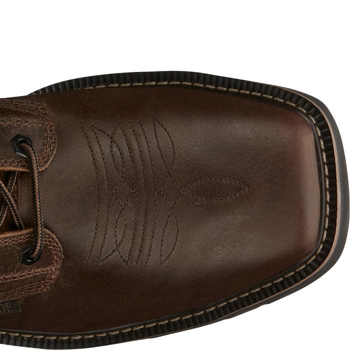 Its distressed leather exterior gives this boot a slightly vintage feel and J-Flex Comfort System® insole protects and supports the foot on even the longest work day. The square steel toe provides added safety and its Stampede™ Rubber and EVA Combination is resistant to abrasion, chips, slipping, and marking which allows you to comfortably work on any surface.