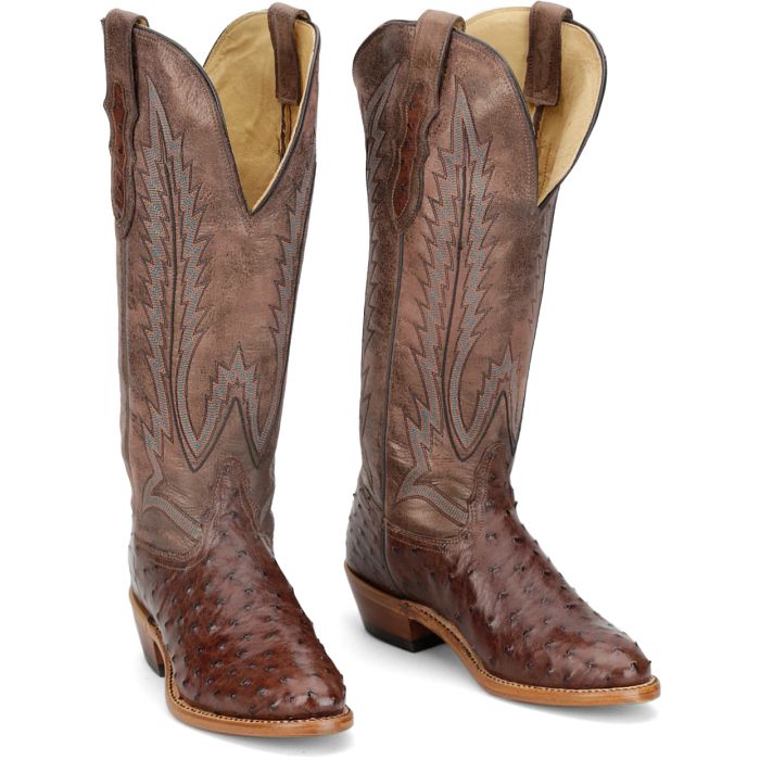 Step into elegance with this 15" limited edition women's boot, crafted from premium full quill ostrich for a luxurious feel and unmatched durability. The shaft features intricate stitching in a bold, dynamic pattern, adding a striking touch to the refined design. With a classic western silhouette, pull straps for easy wear, and a sturdy leather sole, this boot seamlessly blends tradition with modern craftsmanship. Perfect for making a statement with both style and comfort.