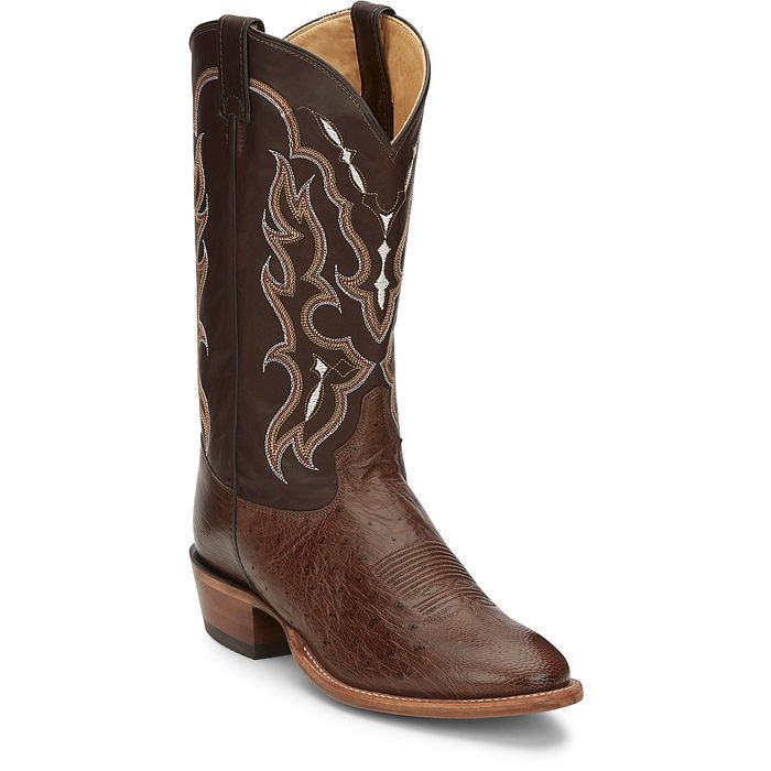 Step into refined Western style with this Men’s Smooth Ostrich Boot. The genuine ostrich leather foot delivers a naturally soft, supple feel that molds to your stride, while the premium leather shaft with bold stitching adds unmistakable cowboy character. A classic toe profile and traditional cowboy heel keep the look timeless, and sturdy pull tabs make on/off easy. Finished with a cushioned insole and durable outsole, it’s the perfect blend of luxury and everyday performance—made for long days, late nights, and every standout moment in between.